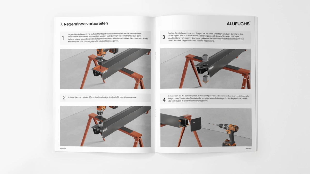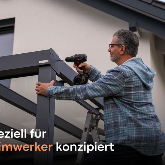 Die Montage Ihres Terrassendachs war noch nie so einfach! Unsere speziell entwickelten Bohrschablonen machen jede Bohrung präzise und schnell. Zudem verwenden wir ein System, bei dem nur eine Schraubenart für das Dach benötigt wird – kein Sortieren, kein Rätselraten. Unsere Anleitung führt Sie Schritt für Schritt verständlich durch den Aufbau!
