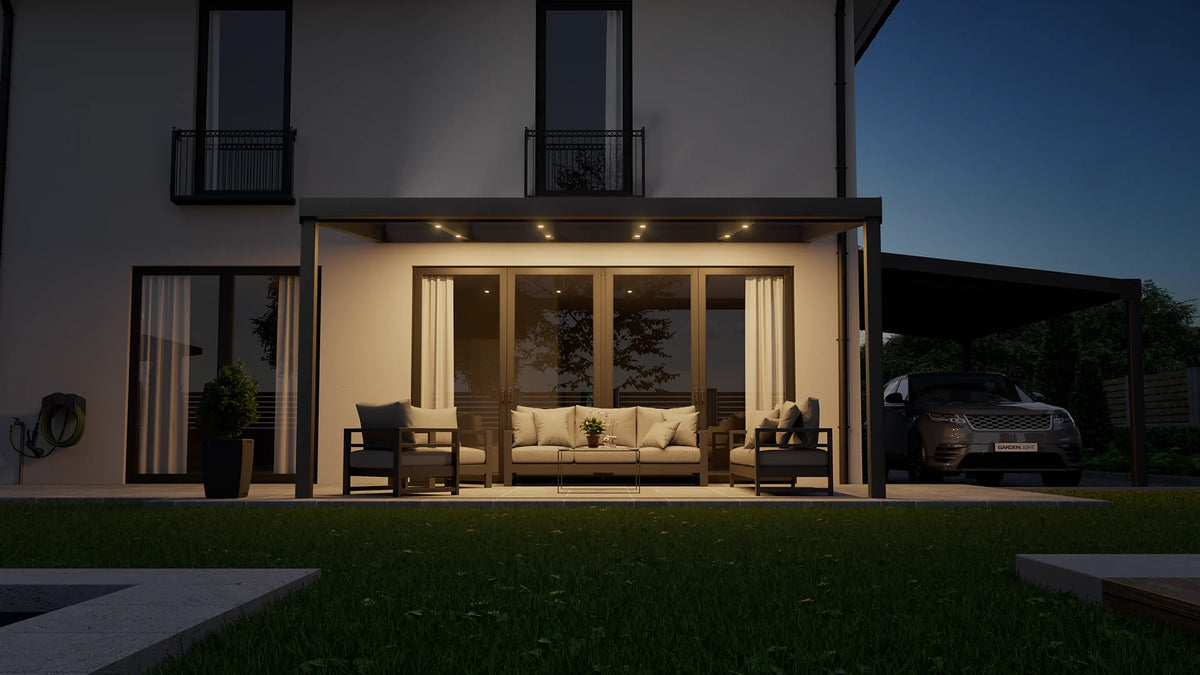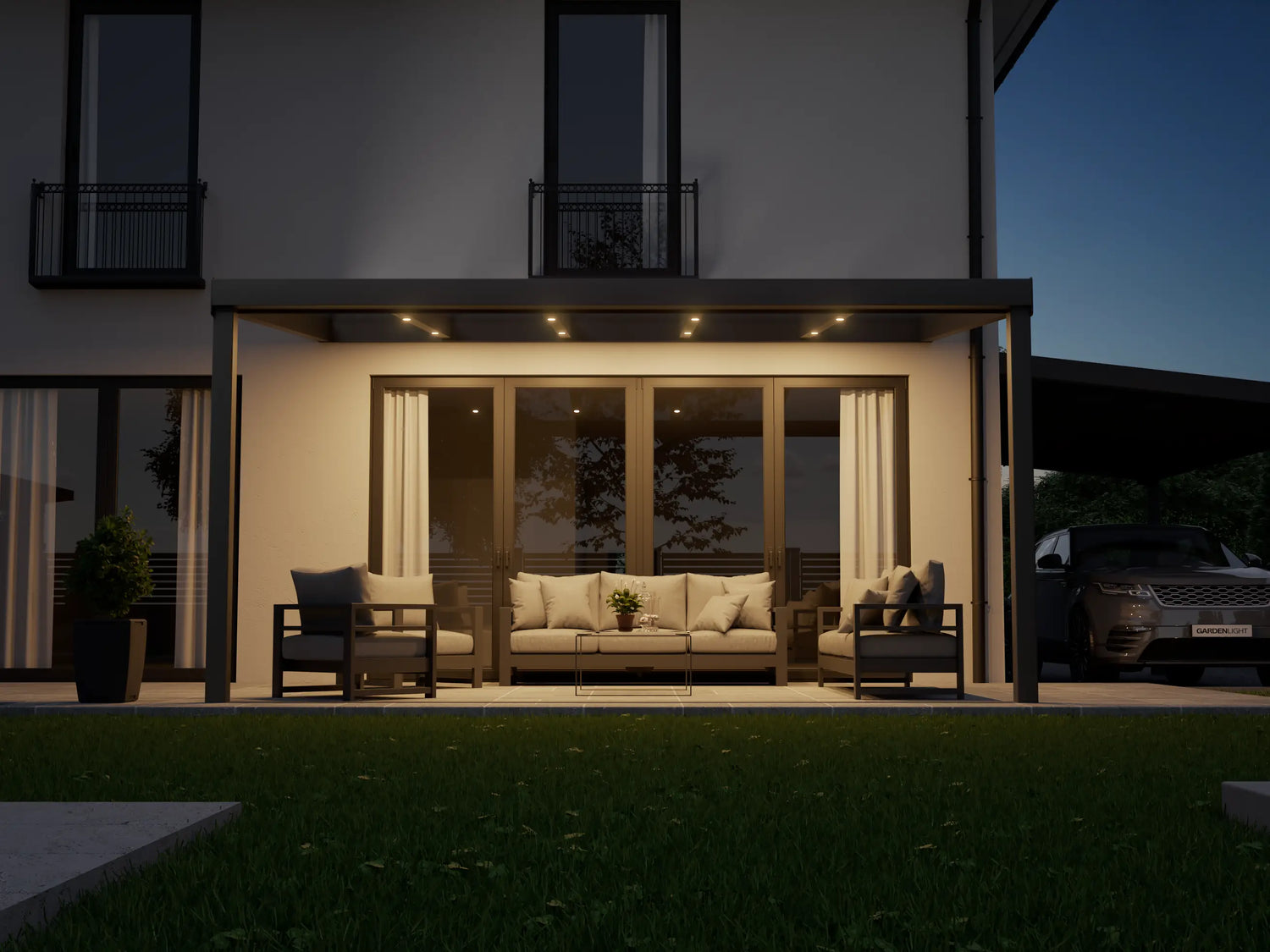Ja, die LED-Beleuchtung ist wetterfest und für den Außenbereich geeignet. Mit der Schutzklasse IP65 ist sie zuverlässig gegen Regen und Feuchtigkeit geschützt. Das Aluminiumgehäuse sorgt dafür, dass sie langlebig und sicher unter Ihrer Überdachung funktioniert.