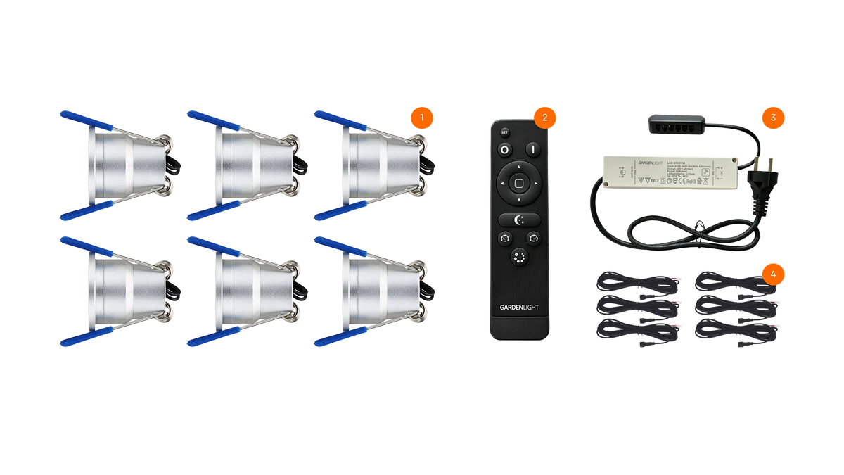 Verwandeln Sie Ihre Terrasse in einen stimmungsvollen Wohlfühlort mit unseren hochwertigen LED-Einbaustrahlern. Das Komplettsystem enthält dimmbare Spots, einen passenden Transformator sowie eine Fernbedienung zur einfachen Lichtsteuerung. Ob sanftes Licht für entspannte Abende oder klare Beleuchtung beim Zusammensitzen, mit nur einem Knopfdruck schaffen Sie Atmosphäre, die sich Ihrem Moment anpasst. Jeder Strahler ist aus langlebigem Aluminium gefertigt, mit 5 Meter Zuleitung ausgestattet und dank IP65-Schutz zuverlässig spritzwassergeschützt. Für Komfort, den man sieht und spürt.