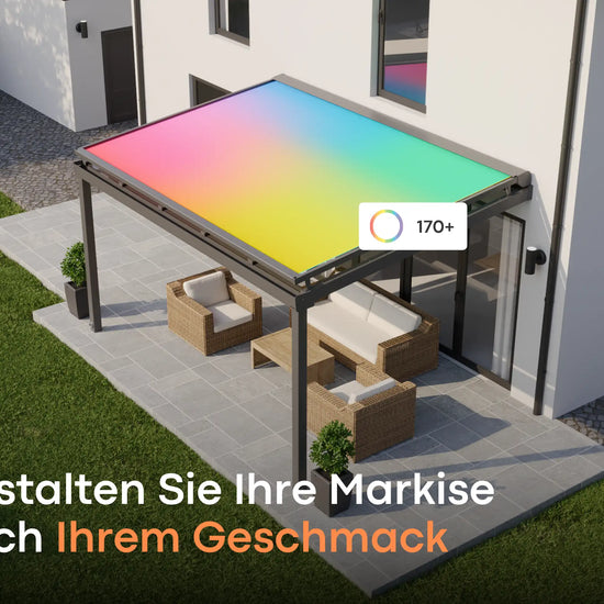 Alle Stoffe, die Sie bei uns zur Auswahl haben, bieten einen UV-Schutz zwischen 90 und 98 Prozent. Eine einfache Faustregel: Je dunkler der Stoff, desto höher der Schutz. Helle Stoffe lassen etwas mehr Licht durch, wirken dafür aber besonders freundlich und leicht. So finden Sie genau die Kombination aus Schutz und Stimmung, die zu Ihrer Terrasse passt.